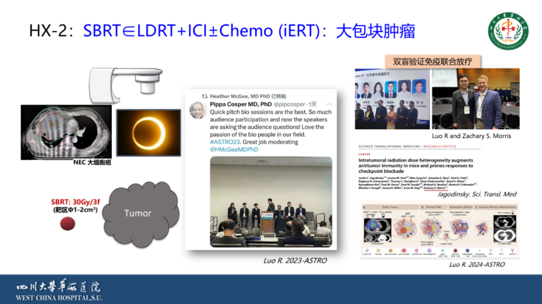 HX-2:SBRT∈LDRT+ICI±Chemo(iERT):拟解决晚期肿瘤(胸部/肝转移)难治性巨大包块肿瘤问题。