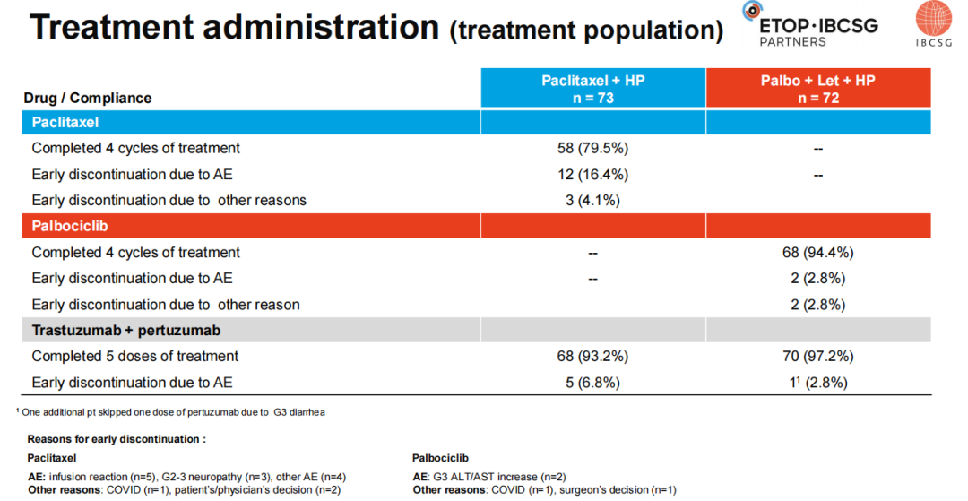 两组患者均接受标准剂量的曲妥珠单抗和帕妥珠单抗(HP)抗HER2靶向治疗,每3周一次,共5个周期。