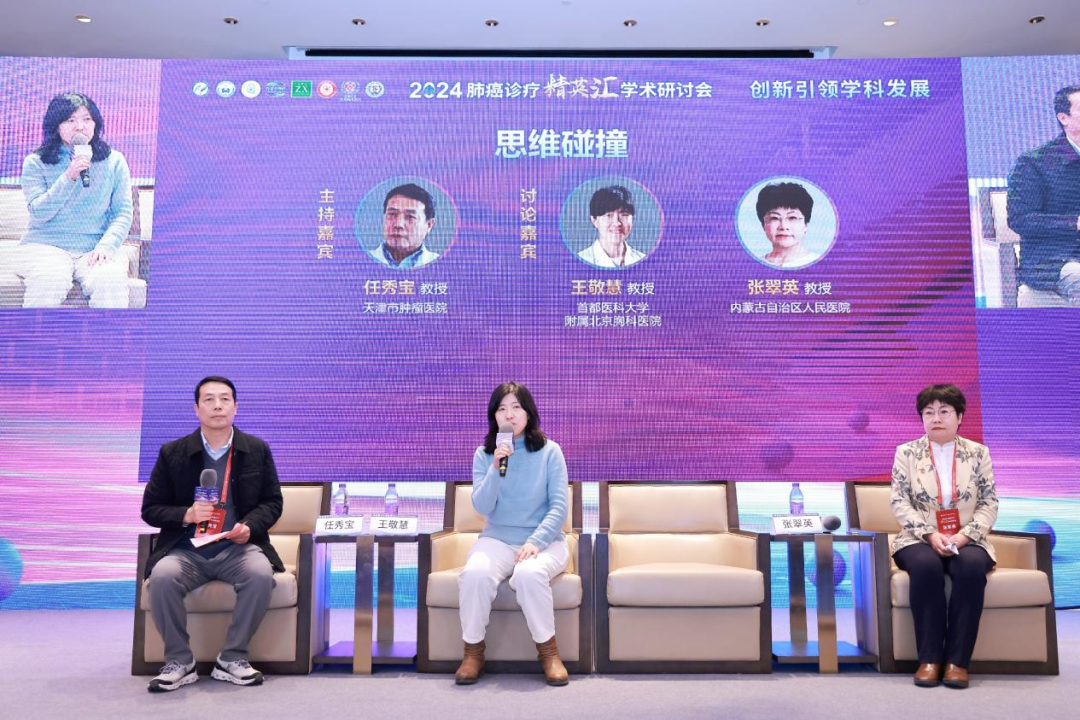 思维碰撞环节在天津市肿瘤医院任秀宝教授主持下,首都医科大学附属北京胸科医院王敬慧教授、内蒙古自治区人民医院张翠英教授参与讨论。