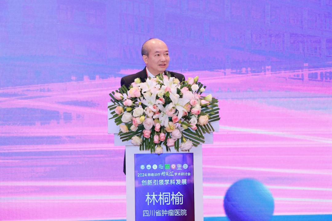林桐榆教授表示很高兴受林根教授邀请参加本届肺癌诊疗精英汇学术研讨会并代表中华医学会肿瘤学分会对本次大会的顺利召开表示祝贺。林教授回顾40余年肺癌诊疗发展历程,从20世纪90年代的放化疗发展至21世纪的靶向治疗、免疫治疗,不断革新着肺癌诊疗范式,改善了患者的生存。在此,林教授重点强调了肺癌三级预防即规范化诊疗、多学科个体化治疗策略对肺癌诊疗水平提升的推动作用。最后,林教授表示,《“健康中国2030”规划纲要》提出了“到2030年实现总体癌症5年生存率提高15%的要求”,这需要领域内工作者的共同努力,不断探索更加精准个体化治疗策略,惠及中国患者的同时,将来自于中国的研究成果推向国际,不断提升我国肺癌领域的国际影响力。