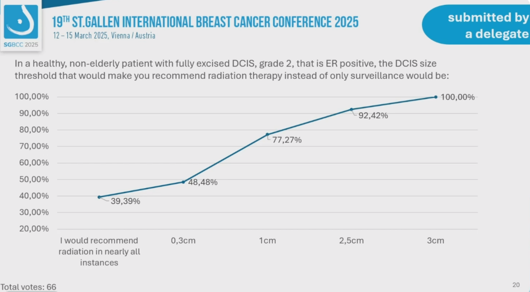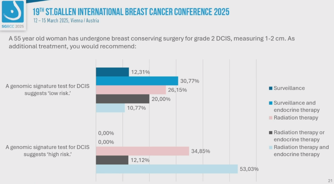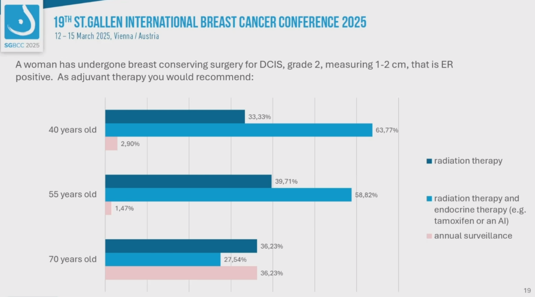 编者按:第19届St.Gallen国际乳腺癌大会(SGBCC 2025)于当地时间2025年3月12~15日在音乐之都维也纳举行。大会的最后一天,专家投票压轴登场。《肿瘤瞭望》整理了导管原位癌、幸存者治疗的专家投票,现整理给大家,与大家一起感受早期乳腺癌治疗决策的圣加伦氛围。