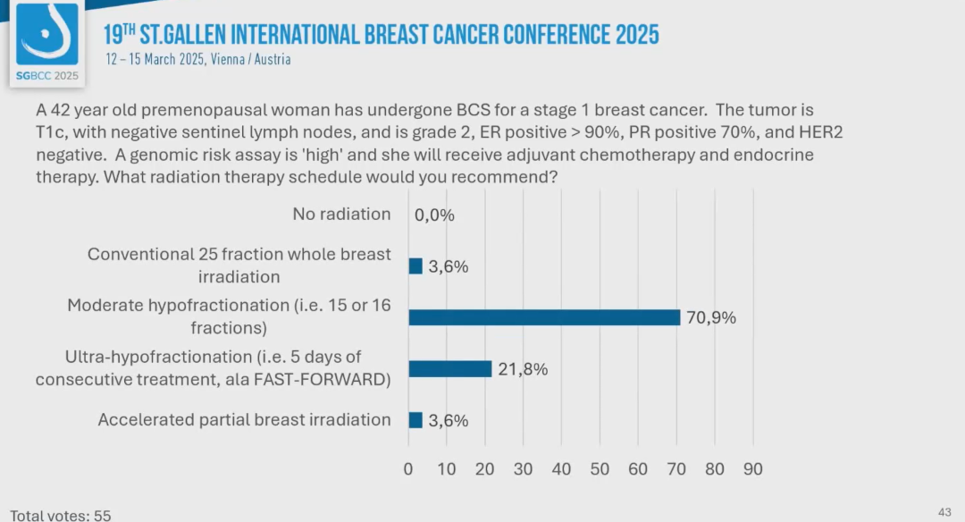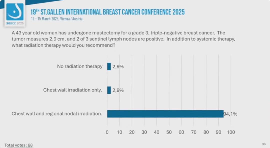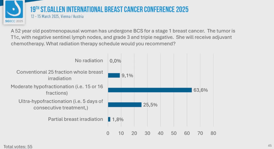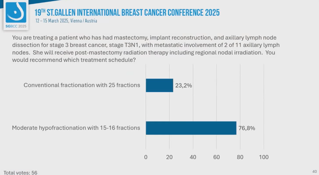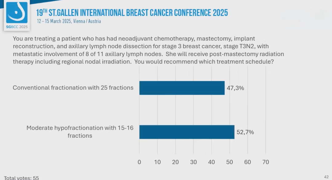 编者按:第19届St.Gallen国际乳腺癌大会(SGBCC 2025)于当地时间2025年3月12~15日在音乐之都维也纳举行。大会的最后一天,专家投票压轴登场。《肿瘤瞭望》整理了保乳和腋窝处理章节、放疗章节的专家投票,现成文如下,与大家一起感受早期乳腺癌治疗决策的圣加伦氛围。
