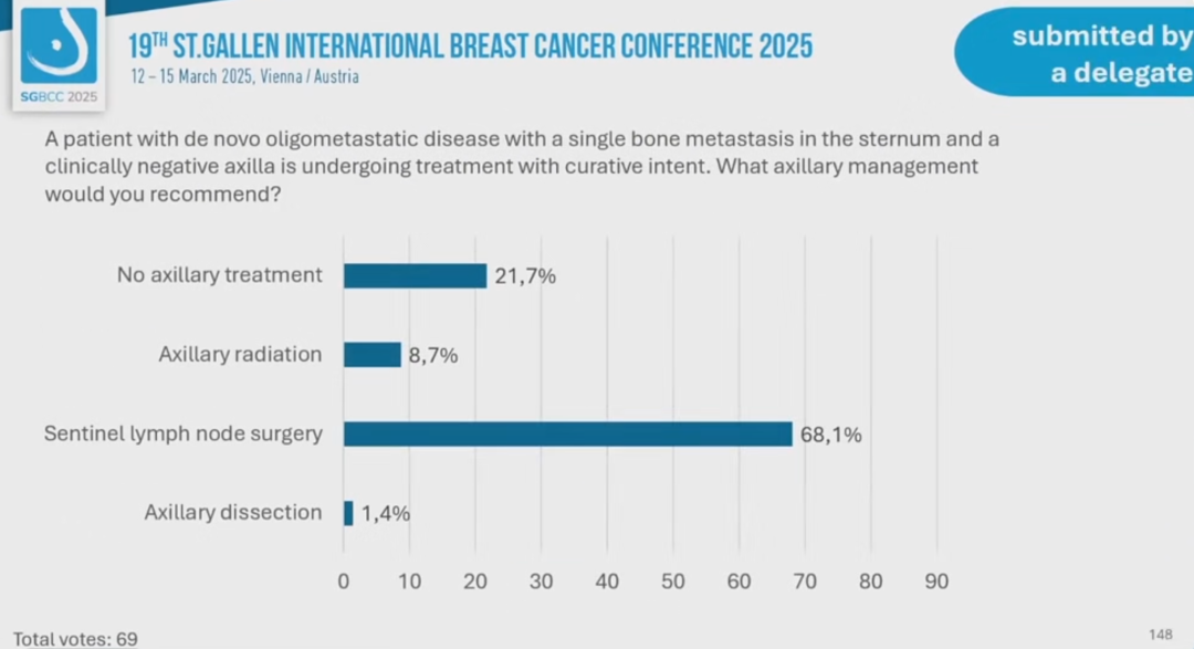 编者按:第19届St.Gallen国际乳腺癌大会(SGBCC 2025)于当地时间2025年3月12~15日在音乐之都维也纳拉举行。大会的最后一天,专家投票压轴登场。继之前四篇后,《肿瘤瞭望》整理了St Gallen国际乳腺癌共识的最后一部分,包括局部复发乳腺癌治疗章节、寡转移性乳腺癌章节的专家投票,现成文如下,与大家一起感受早期乳腺癌治疗决策的圣加伦氛围。