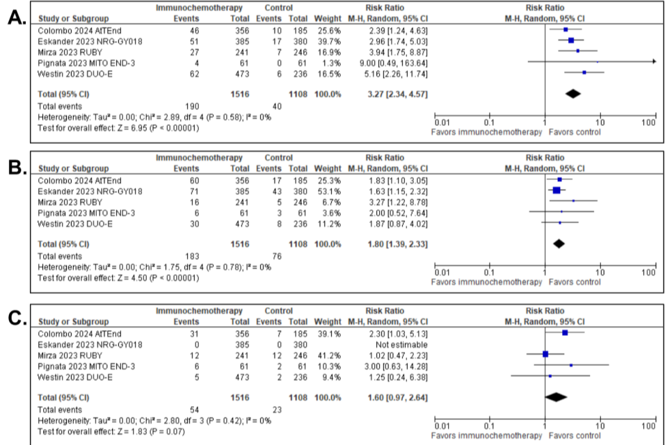 All five trials compared immunotherapy combined with chemotherapy versus placebo plus chemotherapy in primary advanced or recurrent EC.
