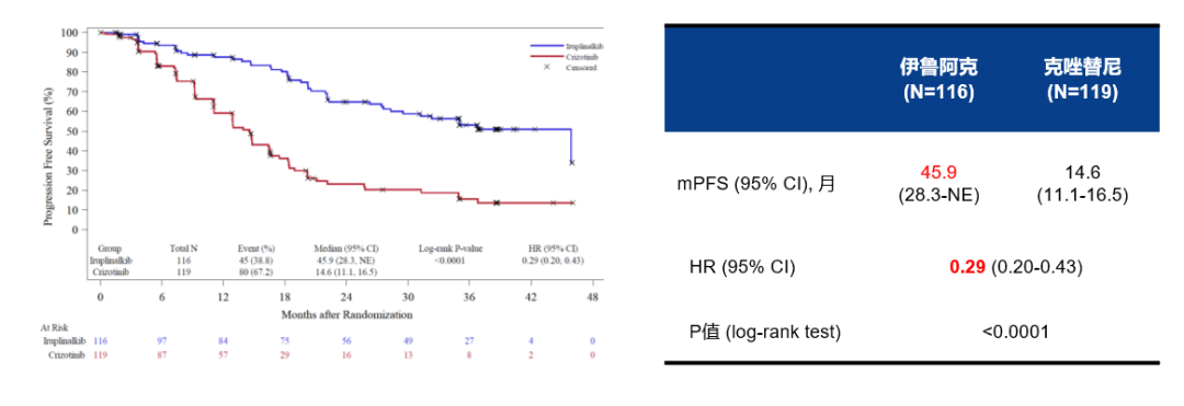 图11. INSPIRE研究IRC评估的PFS(针对中心实验室复测为ALK阳性的NSCLC患者)