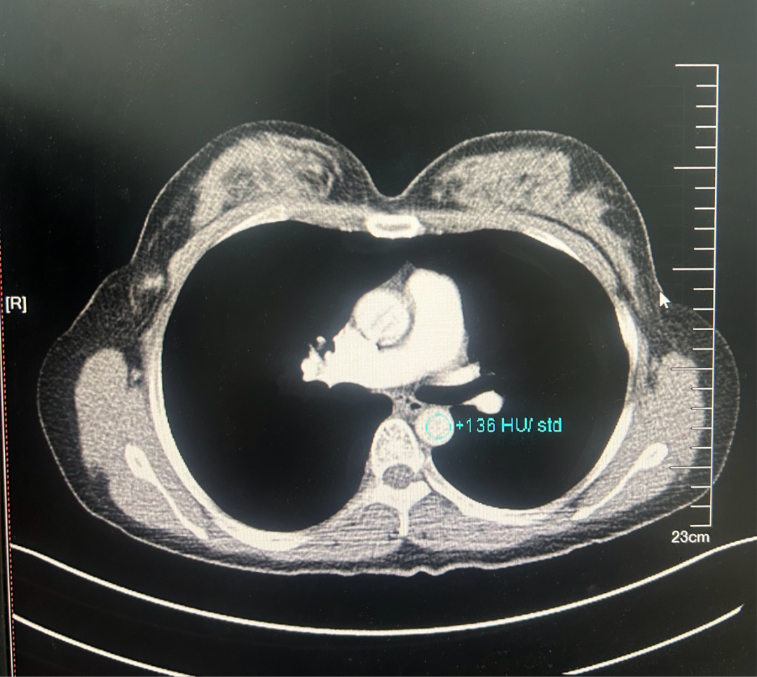 2、左侧乳头凹陷并强化,左乳下份皮肤结节样强化,请结合临床及其他检查。