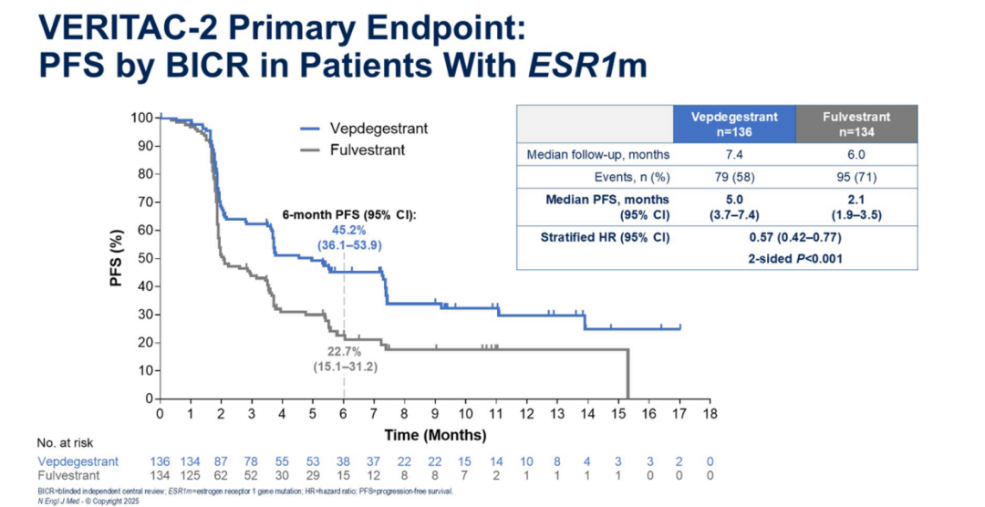 △VERITAC-2研究主要终点:BICR评估的ESR1突变人群和总人群的PFS