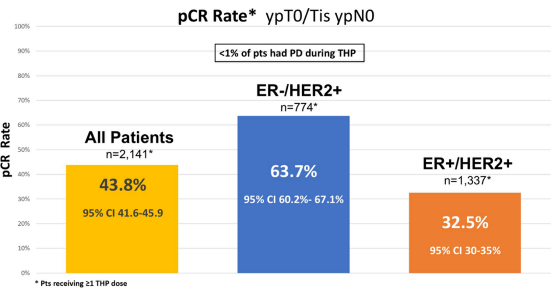 在《2025版CSCO BC诊疗指南》HER2阳性乳腺癌新辅助治疗推荐中,已将THP×6方案的证据级别由2A调整为1A。这充分说明,临床实践中去掉卡铂可能对患者的pCR率没有太大影响。