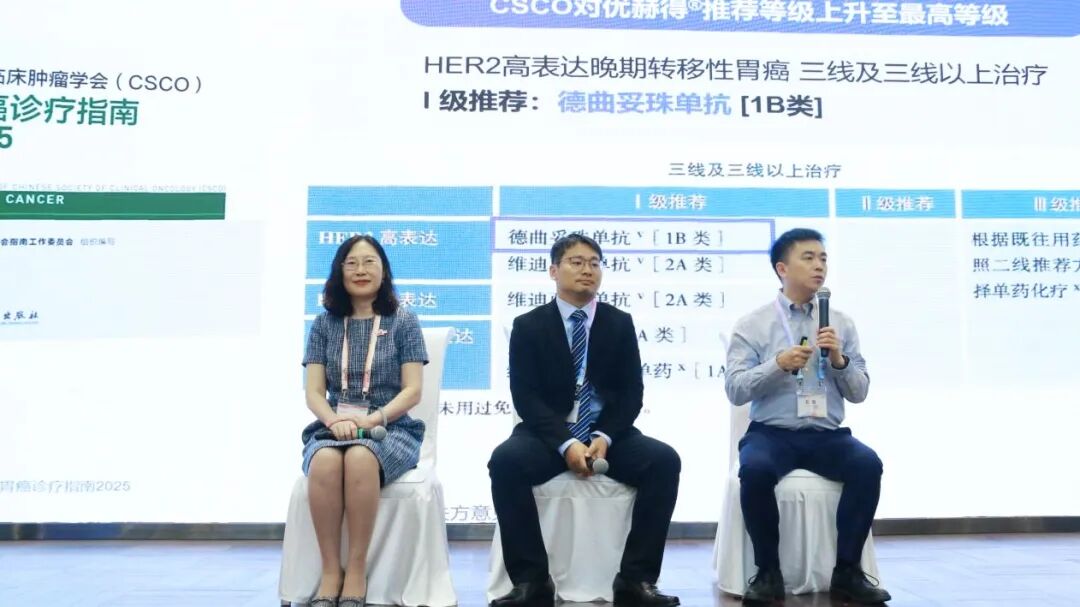 北京大学肿瘤医院彭智教授结合DESTINY-Gastric06研究[6]中国研究数据分享了T-DXd在胃癌中的应用体验,他指出,中国晚期胃癌患者三线治疗选择有限,生存期短。DG-06研究显示T-DXd为中国患者带来mOS 12.4个月的生存获益,且安全性良好,ILD发生率低且均为1-2级。基于此,2025版CSCO胃癌诊疗指南将其列为HER2高表达晚期胃癌三线治疗的I级推荐(1B类证据),为我们提供了强有力的治疗武器。