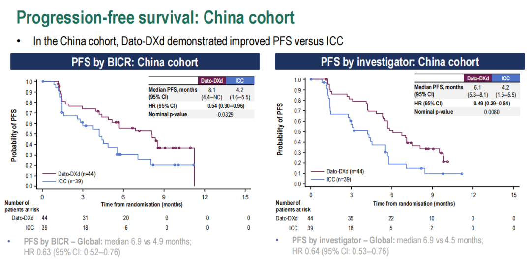 Dato-DXd组较ICC组ORR提升近1倍(38.6%vs17.9%),至首次后续治疗时间(TFST)也显著延长(8.6个月vs 4.5个月,HR 0.45,95%CI:0.26-0.76)。