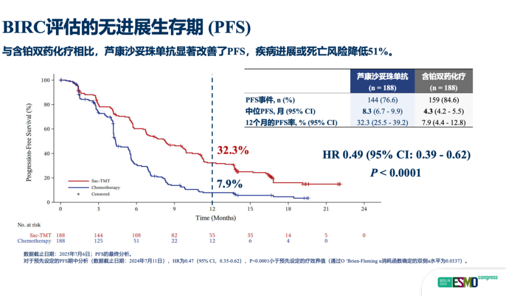 图1.OptiTROP-Lung04研究由BICR评估的PFS数据