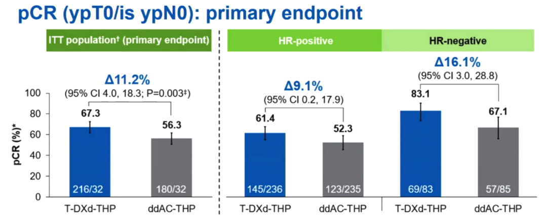 △DB-11研究ITT人群和HR-、HR+患者的pCR率
