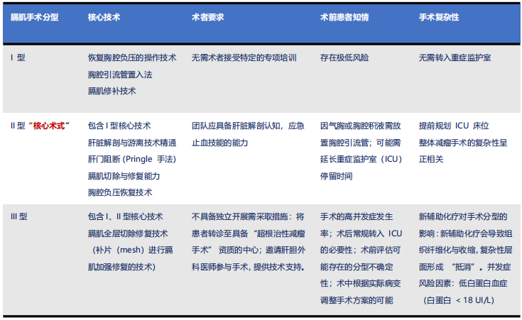 膈肌手术谁做?怎么做?基于TRUST研究,应对妇科肿瘤科室进行晚期卵巢癌手术资格认证:例如R0切除率≥50%;手术量≥36台/年。若不具备独立开展膈肌手术的能力,将患者转诊至具备“超根治性减瘤手术”资质的中心;邀请肝胆外科医师参与手术,提供技术支持。