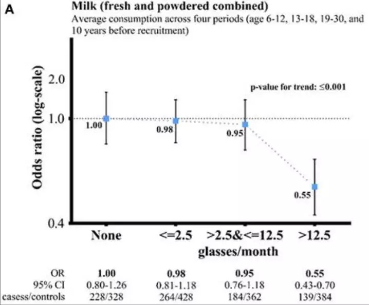 图1:可见常规摄入牛奶可显著降低患鼻咽癌的风险率