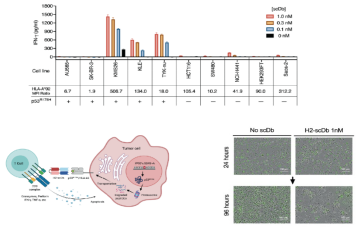 2021 年 3 月,美国约翰霍普金斯大学医学院 Bert Vogelstein、Sandra B.Babelli和Shibin Zhou教授的团队成功研制出了一种靶向TP53基因常见突变的双特异性单链抗体(bispecific single-chain diabody,scDb),并证实了该双特异性抗体可以有效识别含有突变型p53的肿瘤细胞,激活T细胞以发挥抗肿瘤效应(图1)。鉴于这种双特异性抗体可以靶向传统方法难以瞄准的肿瘤细胞内抗原,由此揭开了多种抑癌基因驱动肿瘤的治疗新篇章,该研究成果也以“Targeting a neoantigen derived from a common TP53 mutation”为题于2021年3月1日发表在Science 上。