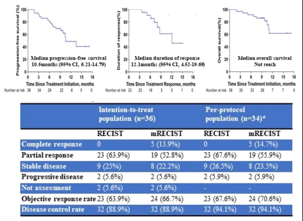 ΔLTHAIC研究:HAIC+特瑞普利单抗+仑伐替尼一线治疗晚期肝癌的PFS、DOR、OS及肿瘤反应(引自:MinKe He, et al. ASCO2021)