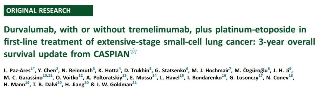 CASPIAN研究奠定了免疫检查点抑制剂联合化疗在广泛期小细胞肺癌一线治疗中的标准治疗地位,结束了这部分患者近30年治疗选择无更新的现状。由于免疫治疗具有长生存的特点,因此患者长期生存结果令人期待。近期,CASPIAN研究更新了其随访3年后的数据[1]。由于目前两款针对PD-L1及PD-1的免疫治疗均有相关的研究数据公布,本文借此对免疫一线治疗这部分患者的数据进行总结。