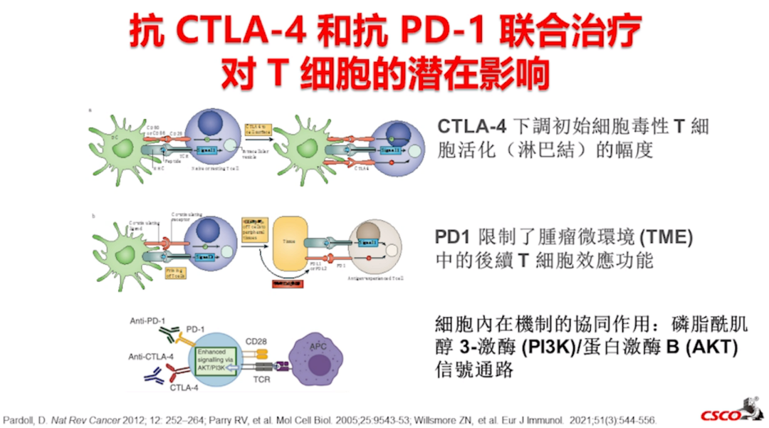 免疫治疗中抗PD-1或PD-L1药物与抗CTLA-4药物联合应用可以达到协同效果。