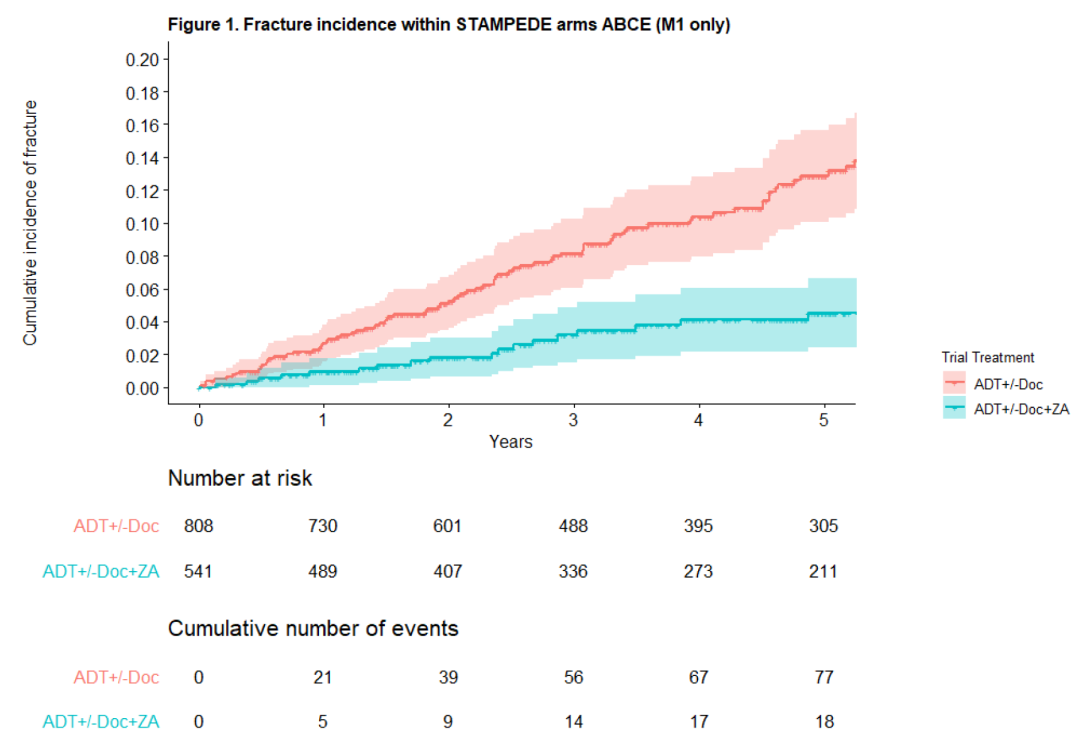 mHSPC的临床骨折发生率以及在ADT±多西他赛基础上联合应用唑来膦酸带来的骨折风险降低:STAMPEDE试验的长期结果(摘要号:A1199)