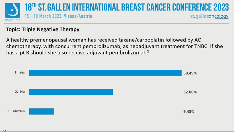 2023年SGBCC专家投票:三阴性乳腺癌早期治疗决策