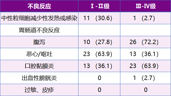 表2.36例接受含塞替派预处理方案单倍体造血干细胞移植髓外白血病患者不良反应[例数,%]