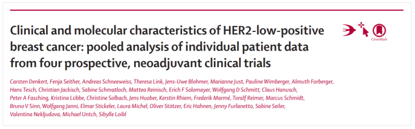 3.Denkert C,Seither F,Schneeweiss A,et al.Clinical and molecular characteristics of HER2-low-positive breast cancer:pooled analysis of individual patient data from four prospective,neoadjuvant clinical trials[published online ahead of print,2021 Jul 9].Lancet Oncol.2021;S1470-2045(21)00301-6.doi:10.1016/S1470-2045(21)00301-6