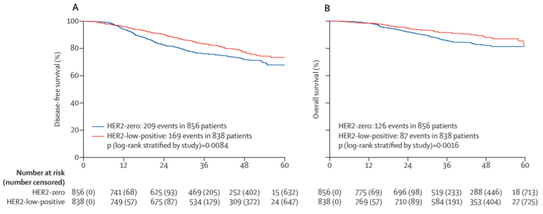 ΔHER2低表达和零表达患者的DFS和OS[3]
